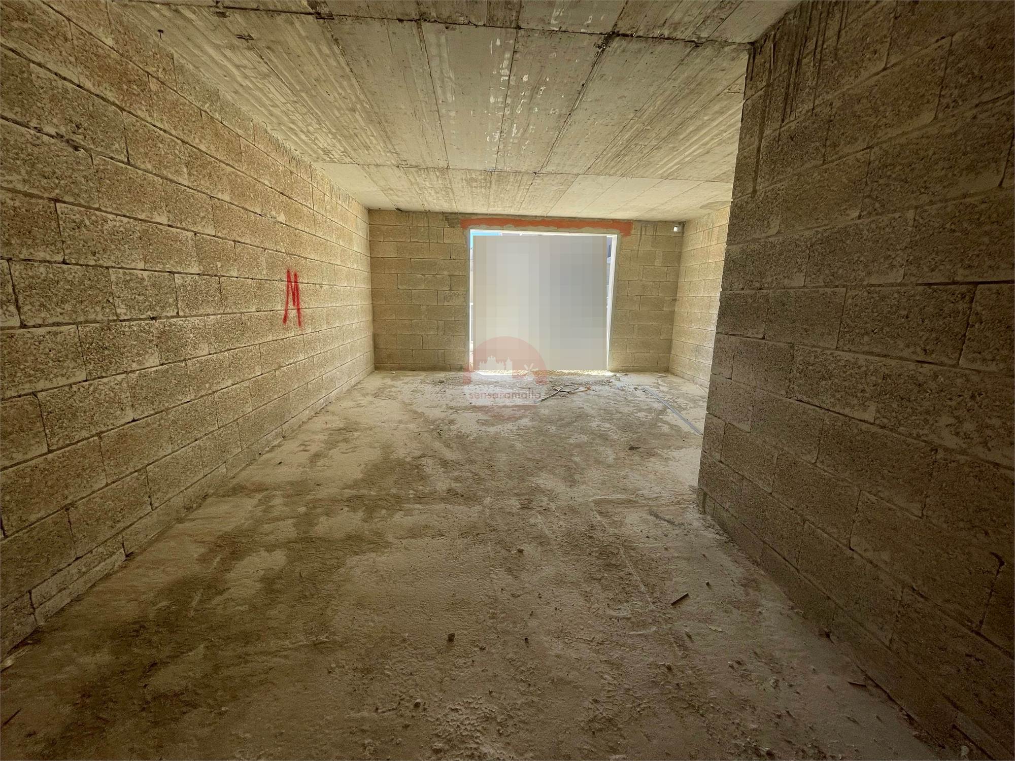 In Mellieha comes this recently built and being offered in shell form a two double bedroom apartment enjoying distant sea views from the back terrace.
