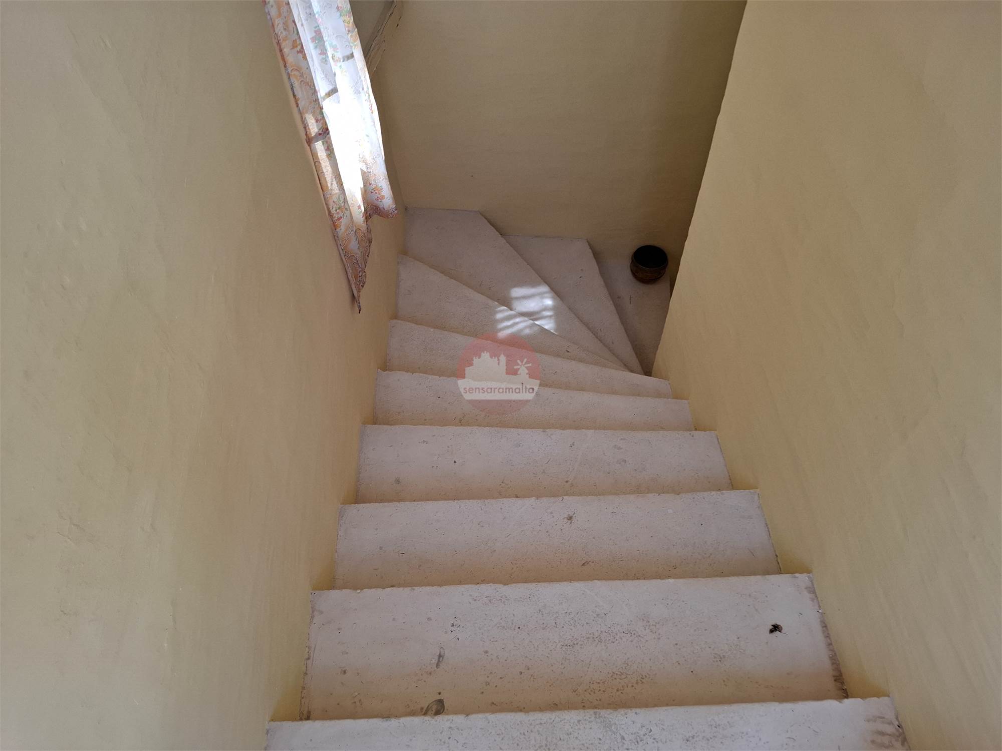 Property presently comprises of a typical hallway that opens into a small kitchen/breakfast, spare toilet and a back yard on ground floor level. An internal side stone stairway leads to its 1st floor where one presently finds 2 bedrooms and a bathroom and a terrace.