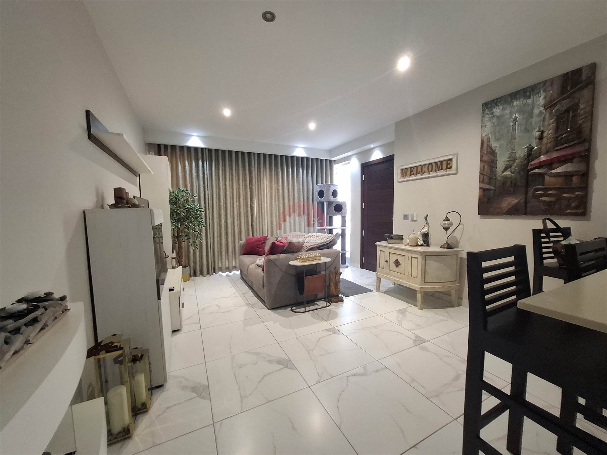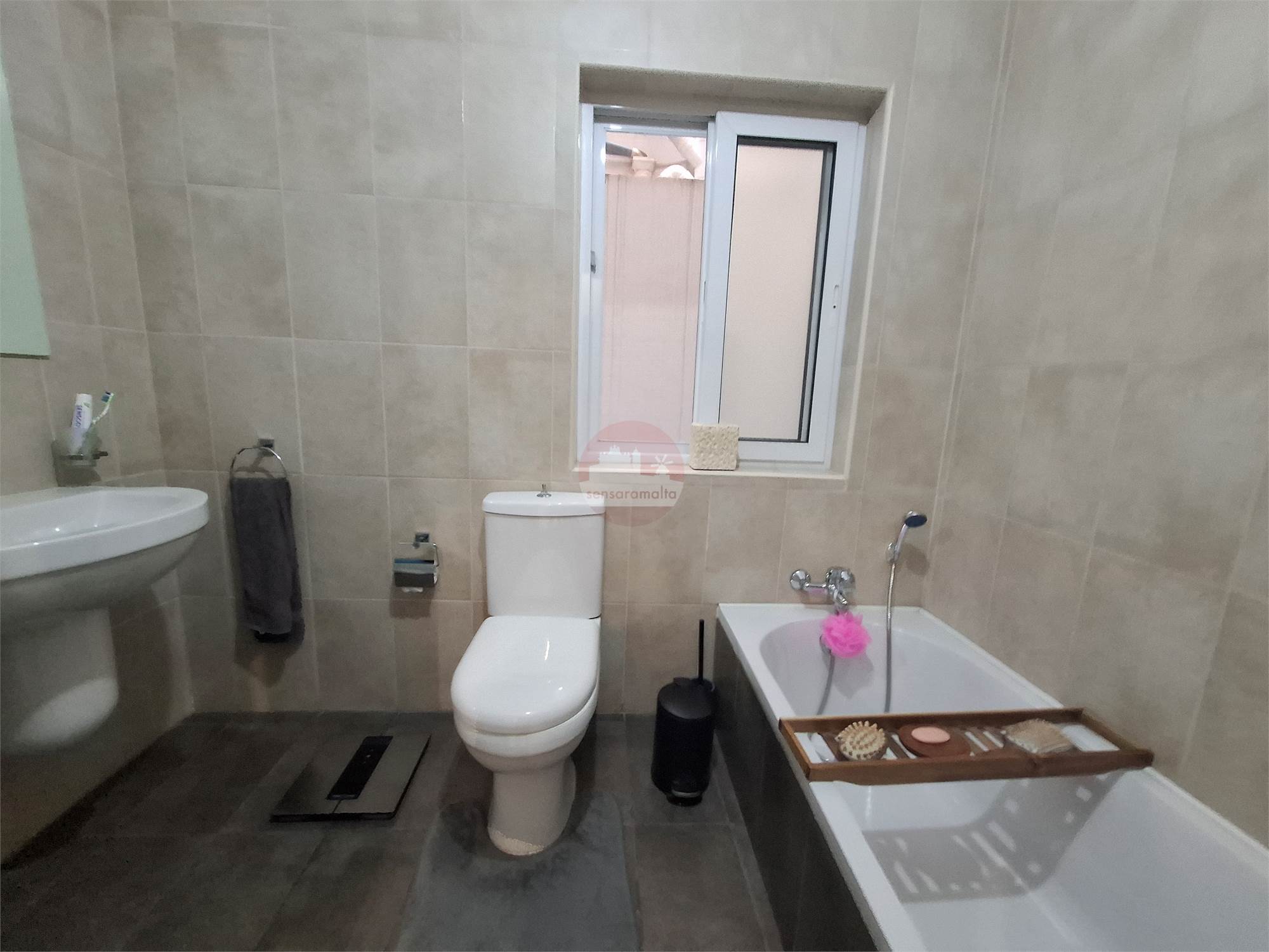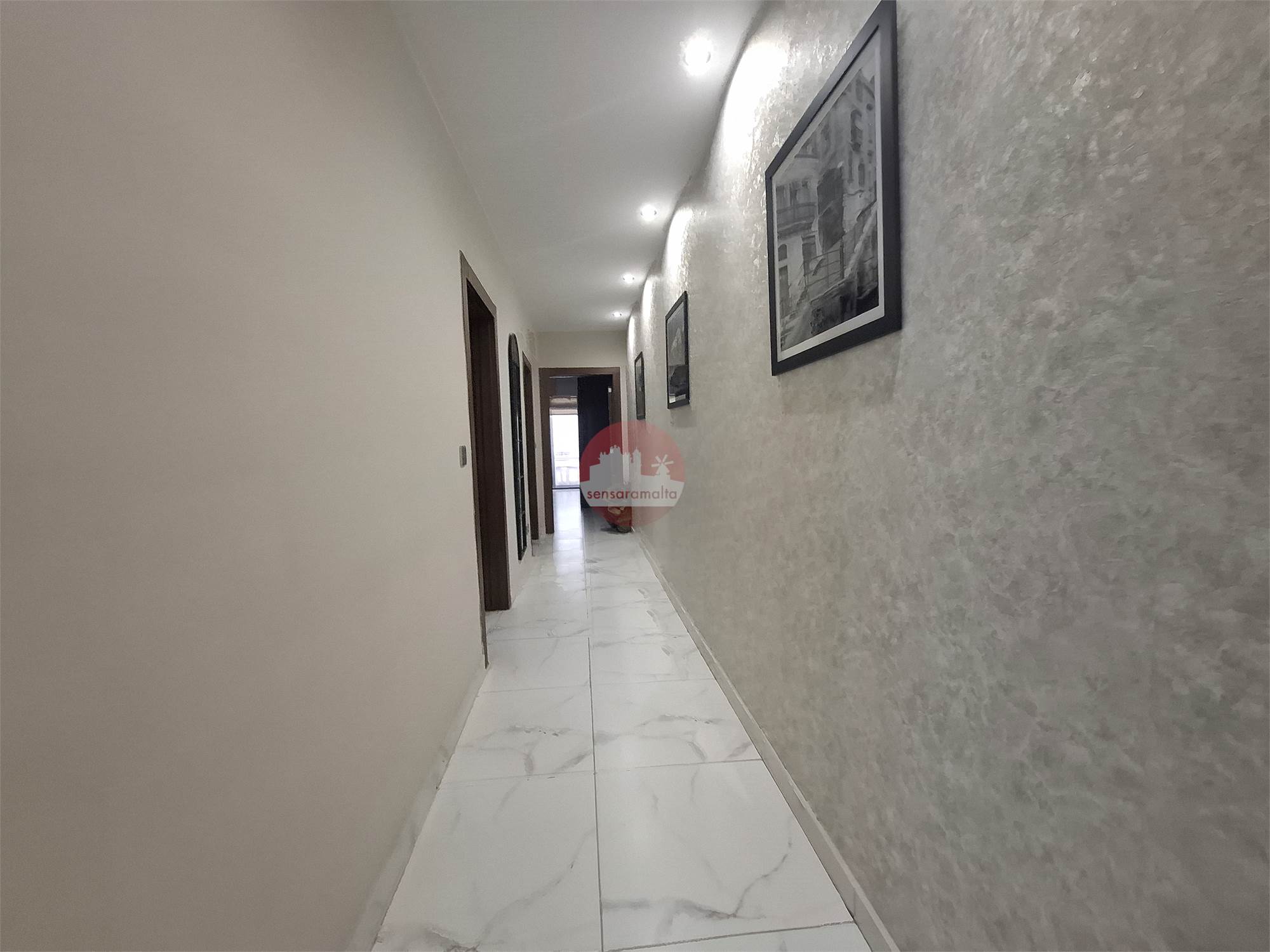 Property consists of a common external staircase leading to the main door were one finds a kitchen/living/dining leading to a balcony enjoying side sea views and a corridor leading to the main bathroom, internal yard and 2 double bedrooms one of which comes with an en-suite and leading to a spacious backyard, ideal for entertaining.