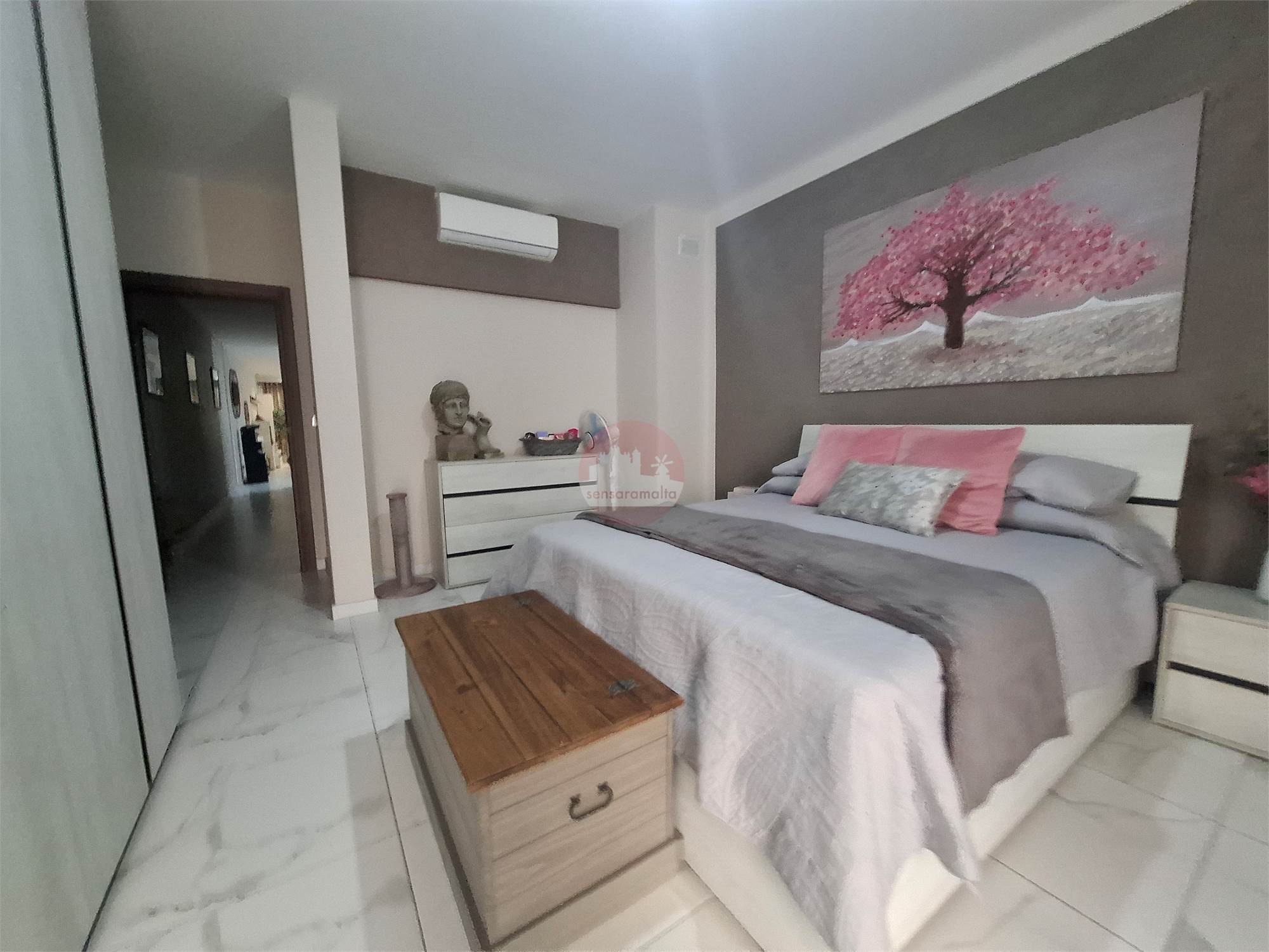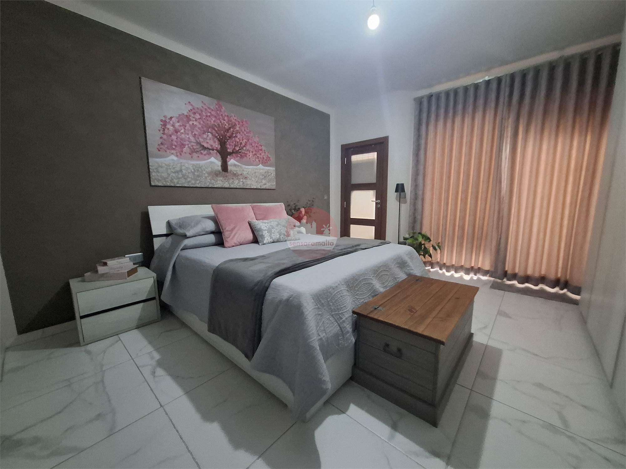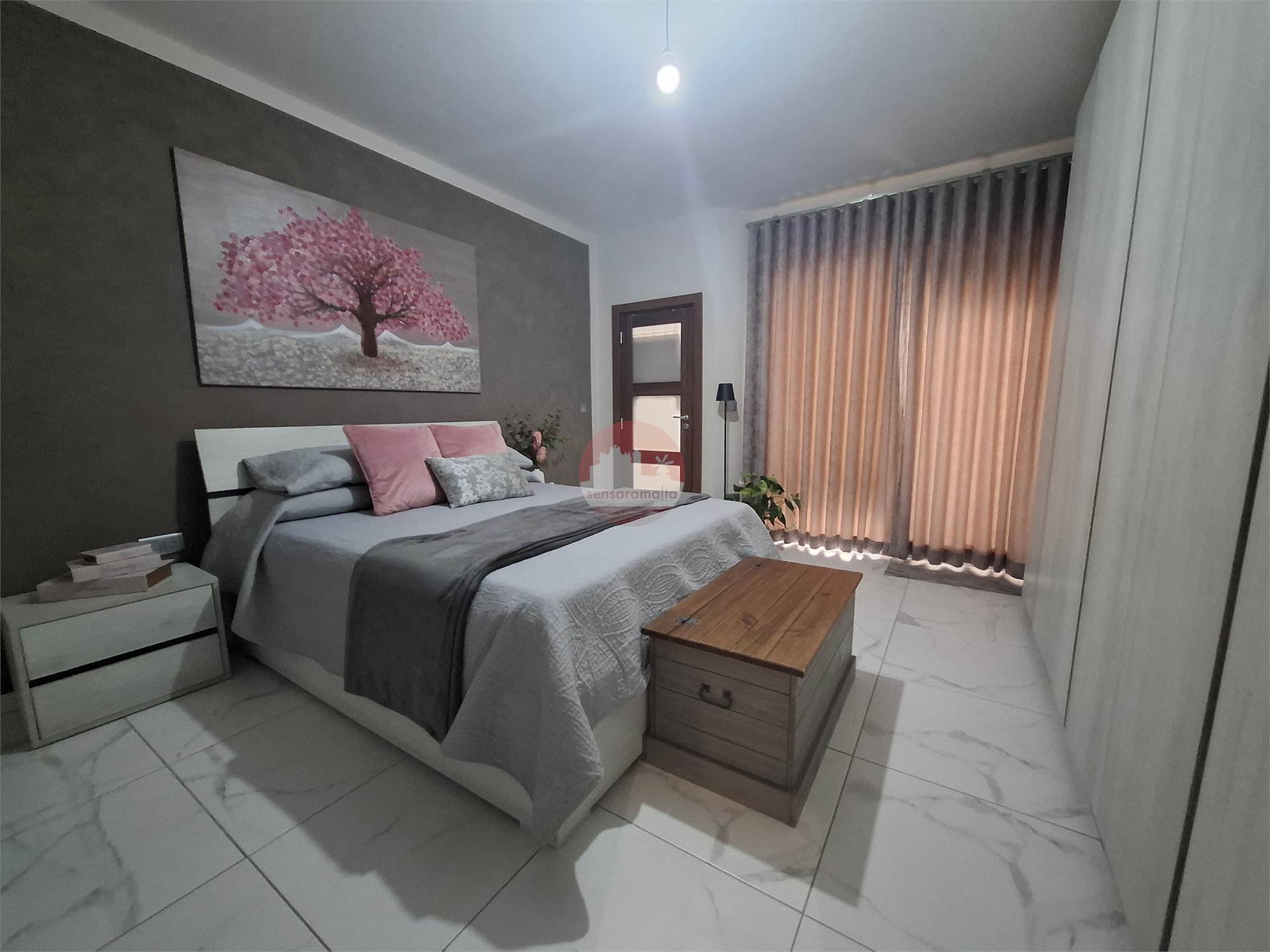 Property consists of a common external staircase leading to the main door were one finds a kitchen/living/dining leading to a balcony enjoying side sea views and a corridor leading to the main bathroom, internal yard and 2 double bedrooms one of which comes with an en-suite and leading to a spacious backyard, ideal for entertaining.
