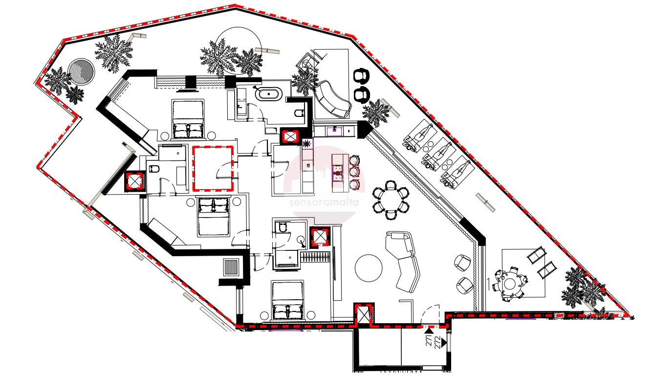 Swieqi - Corner 3 Bedroom Penthouse + Pool