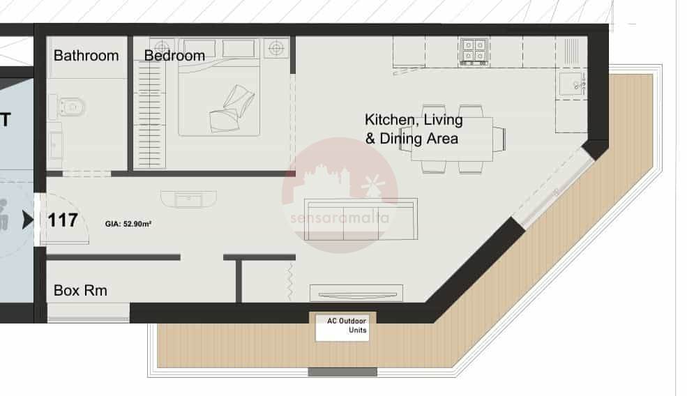 Layout consist of a good sized open-plan kitchen/living/dining, main Bedroom, main bathroom a box room and a front balcony.