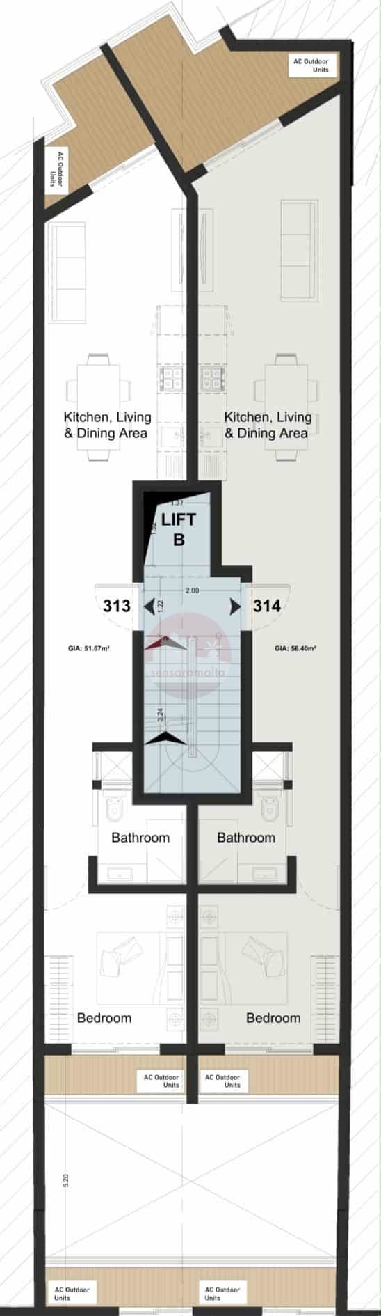 A 3rd floor 1 Bedroom Apartment being sold on plan, measuring 56 sqm internally.