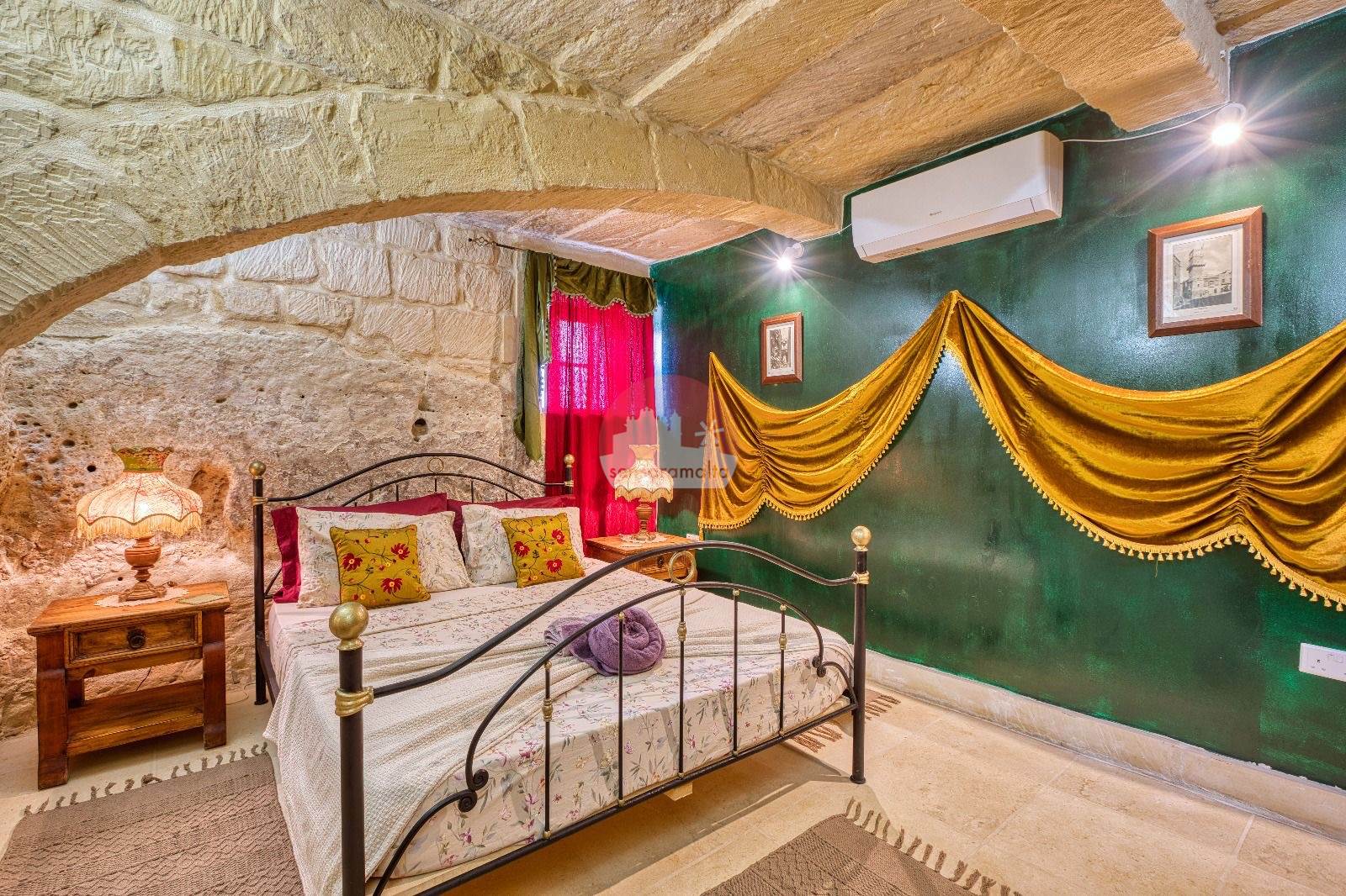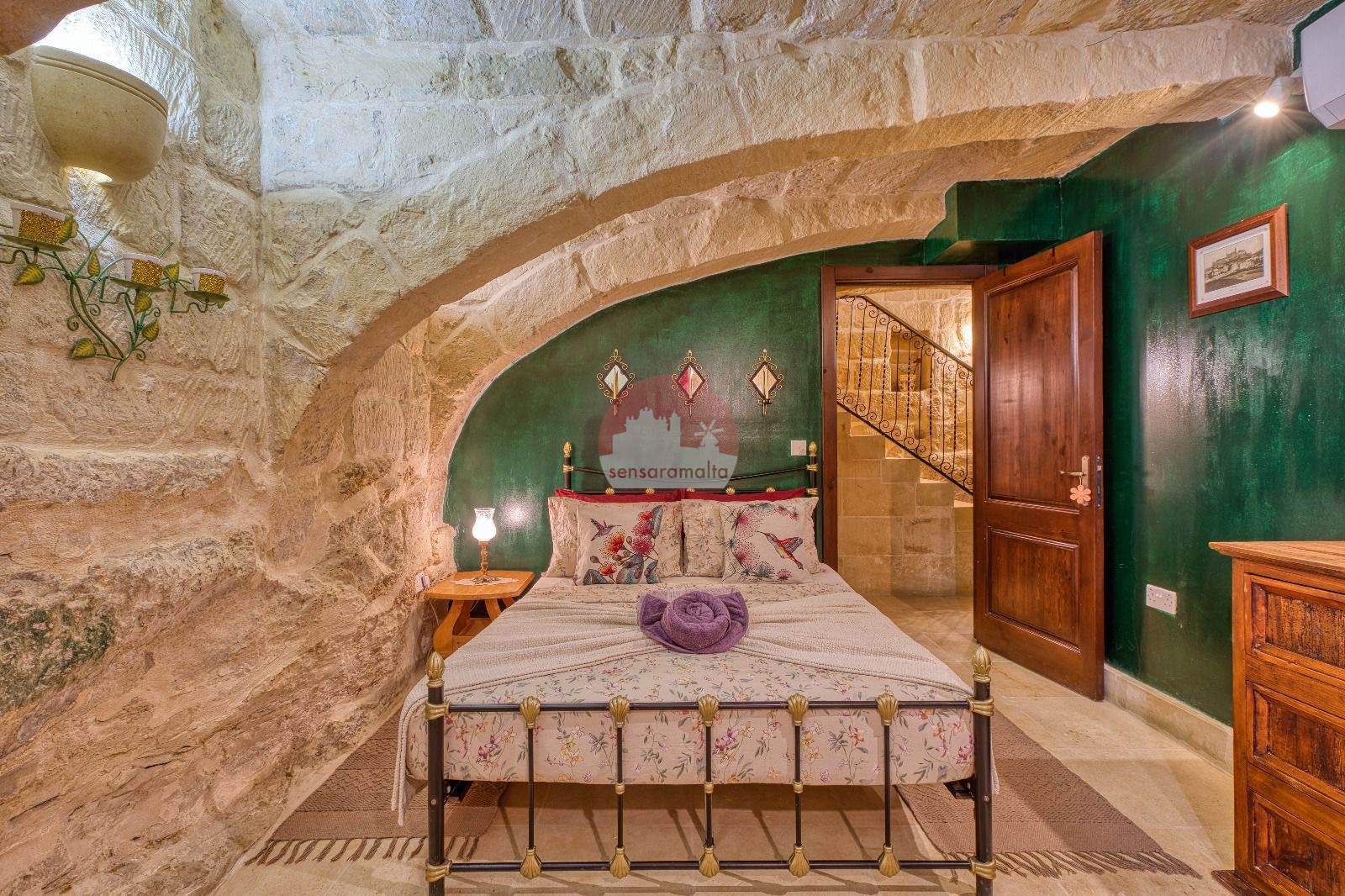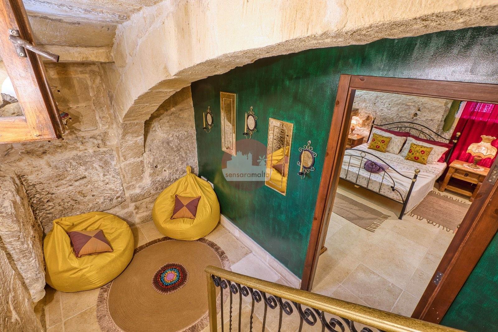 The property showcases traditional architectural features, including stone corbels, arched niches, and original stone slab ceilings and roofs.