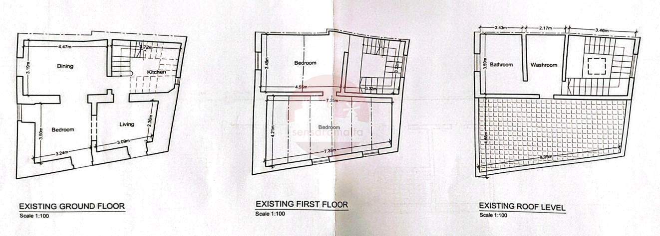 This property has three entrances and comprises a welcoming room and two good-sized rooms leading to a kitchen and toilet. A stone staircase leads to the first floor, which has two double bedrooms. On the roof level there is a bathroom and another room that can be used as a washroom. Roof and Airspace. Freehold