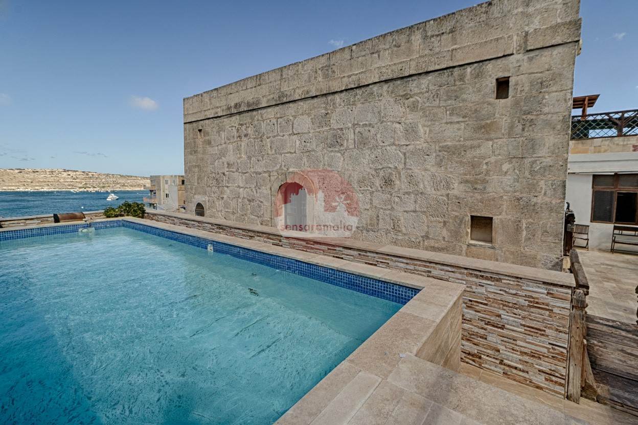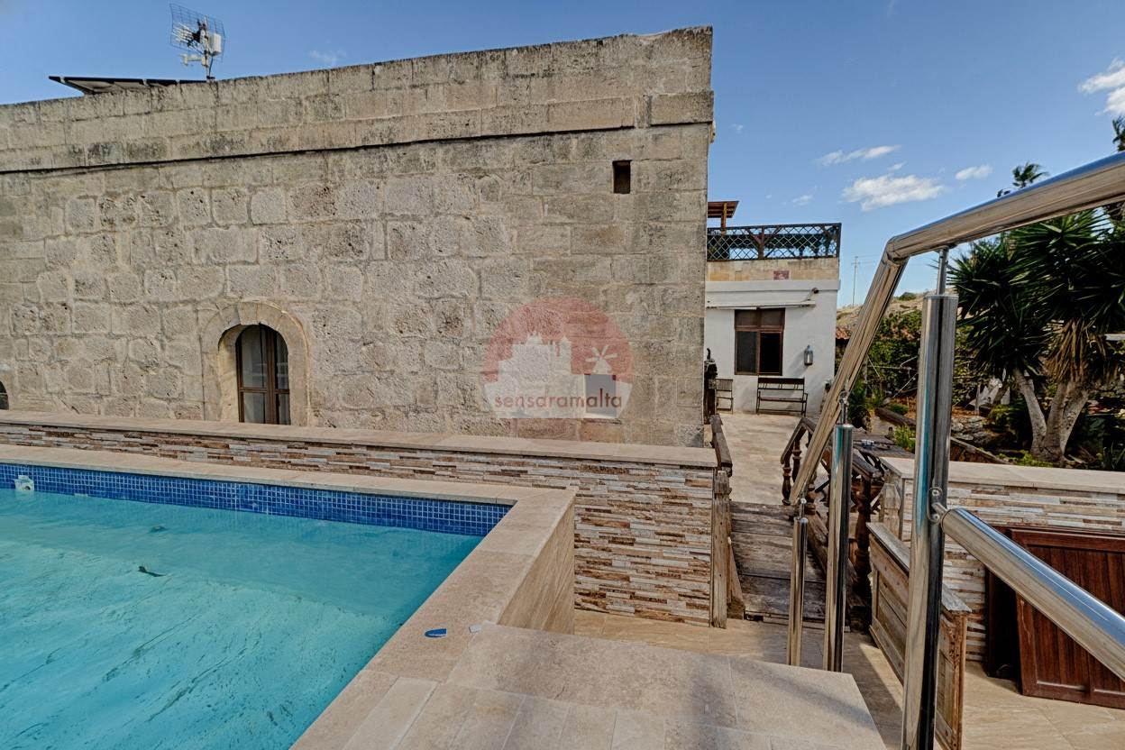St. Paul's Bay - Discover a rare gem in St. Paul’s Bay, enjoying distant panoramic views of St Paul's islands — a charming double-fronted farmhouse and hamlet that beautifully blends historic character with modern comforts. Built around 1920, this lovely home is situated on a private road, providing tranquility and privacy, and is built on a generous plot measuring approximately 16.52 meters by 19.72 meters, app 325sqm. The house boasts approximately 50 square meters of bright, welcoming living space, featuring high ceilings and plenty of natural light. The spacious kitchen and dining area of about 27 square meters is perfect for family gatherings or entertaining friends, while the four generous bedrooms, each around 25 square meters and all with their own en-suites, provide ample comfort and privacy. Outside, the property offers a delightful balance of internal and external space. A landscaped garden of approximately 100 square meters, a cozy backyard of 31 square meters, and a sparkling 15-square-meter pool create an inviting outdoor oasis, with a total external area of around 200 square meters. There is also the wonderful possibility of making a separate use of adjacent semi-detached dwelling, which is included part and parcel with the property. This features a private entrance, an open plan kitchen, living and dining area, a bedroom, and a study, all within about 70 square meters, with its own airspace, which can be extended to an additional floor for extra rooms. The property includes a spacious street-level garage that comfortably fits three cars, with permit approval already in hand for an extension if desired, offering even more potential for customization. It comes finished and equipped, featuring 26 solar panels and a robust 3-phase system, making it both energy-efficient and sustainable. Whether you're looking for a warm family home surrounded by tranquility or an inviting guesthouse to share with visitors, this property offers both privacy and versatility. It’s a perfect retreat that combines historic charm with modern convenience. Contact us today to arrange a viewing and see for yourself the exceptional lifestyle this unique farmhouse has to offer.