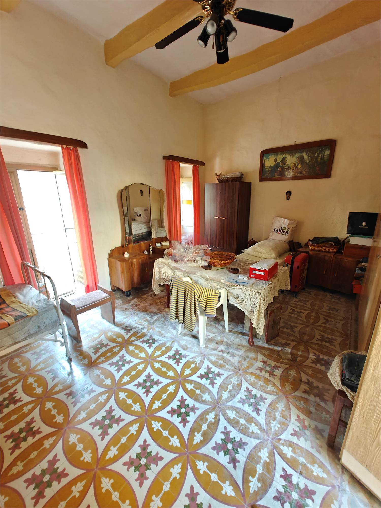 The house retains many original features, including xorok ceilings, with some areas finished in kileb, patterned traditional floor tiles, and a large central courtyard flooded with natural light. Within the courtyard, one finds a stone staircase leading down to the cellar, as well as a small bathroom and a box room.