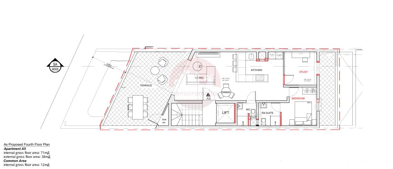 Fgura - On Plan 1 Bedroom + Study Finished Penthouse + Front & Back Terrace