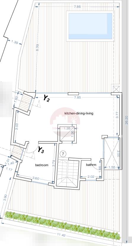 The layout consists of an open plan kitchen/dining/living, main bathroom and a double bedroom. This property comes with massive terraces on both sides which makes it one of a kind!