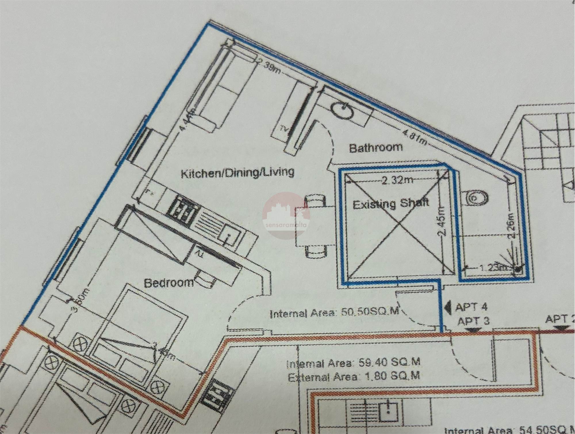 Hamrun - 1 Bedroom 2nd Floor Apartment On Plan