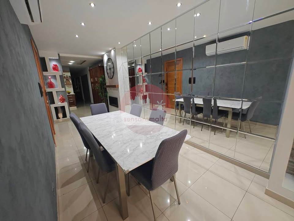 Located in a prime and quiet area of Zebbug, close to all daily amenities, this fully furnished 152sqm first-floor apartment served with lift is ready to move into and offers a spacious open-plan kitchen, living and dining area with a solid American walnut kitchen including appliances, three bedrooms (main with ensuite), a main bathroom, front balcony, and a back terrace with a small washroom/storage room, complemented by full air-conditioning, a solar water heater, and a dedicated part of roof.