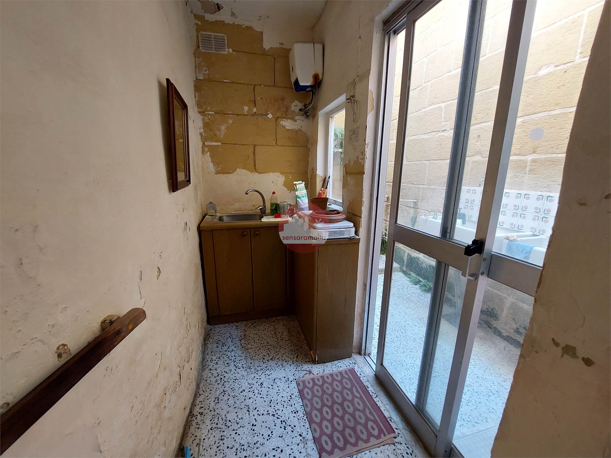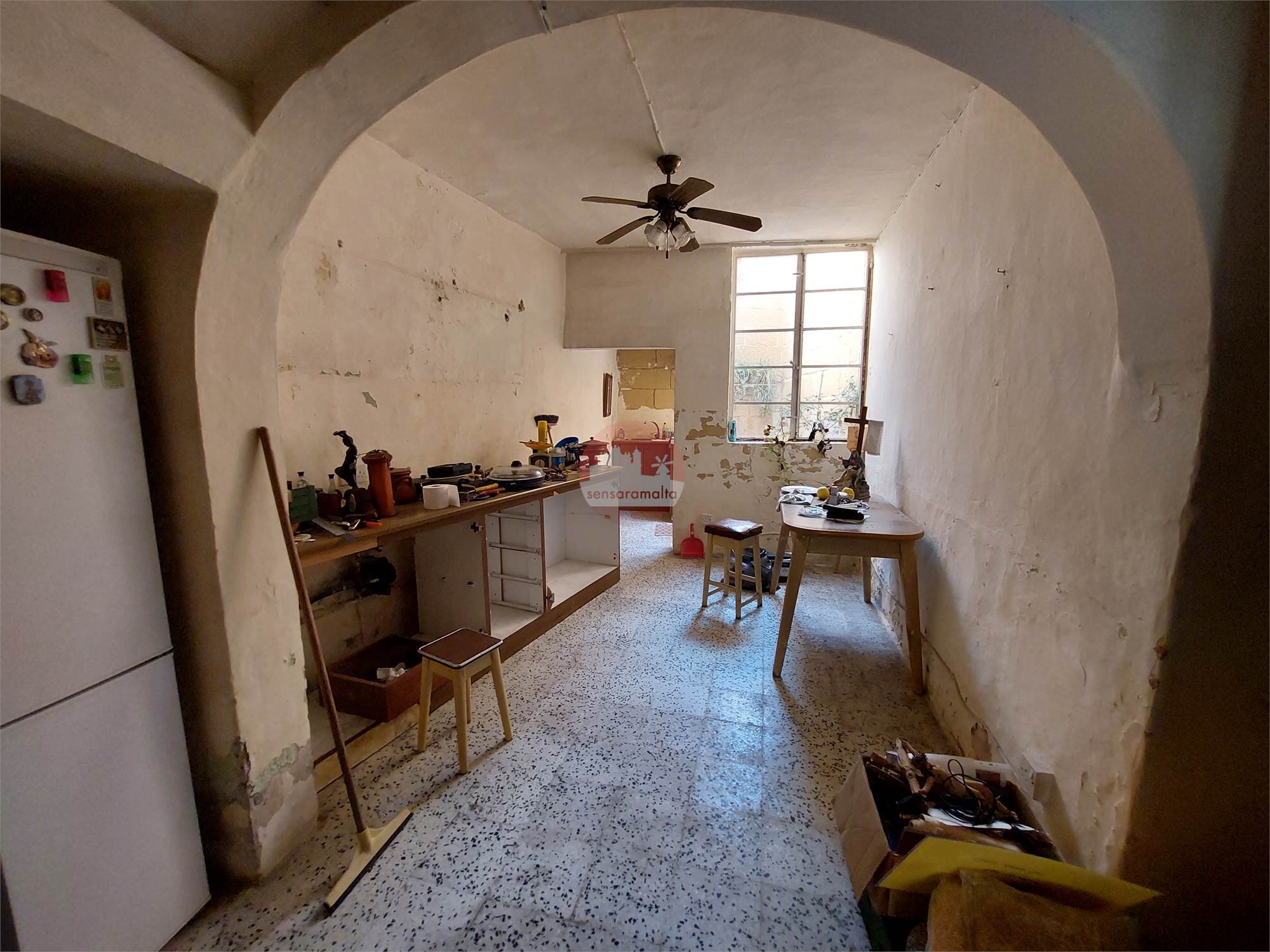 In the heart of Zejtun and in an urban conservation area comes a Townhouse enjoying a one car street level inter connected garage. Upon entering one finds a hallway leading to the garage, cellar, kitchen/dining, sitting, bathroom. On the first floor one finds two double bedrooms, a bathroom and study.