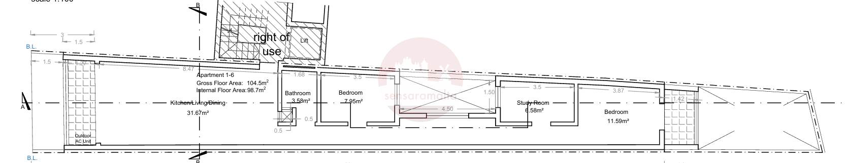 The layout comprises of an open plan kitchen/dining/living with a balcony, main bathroom and three-bedrooms (two double bedrooms and a study). The master bedroom includes a balcony.