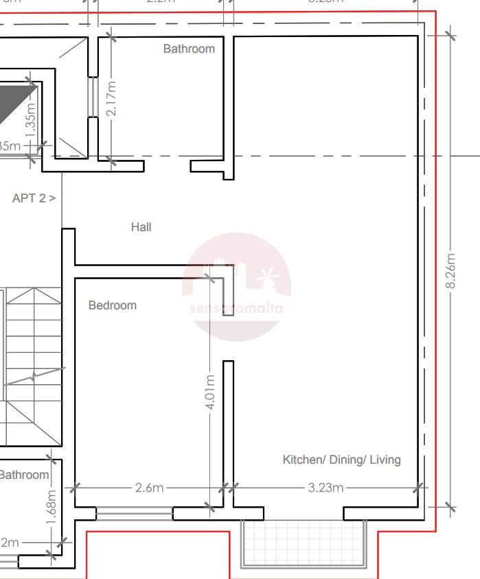 San Gwann - Studio Apartment Shell Form On Plan