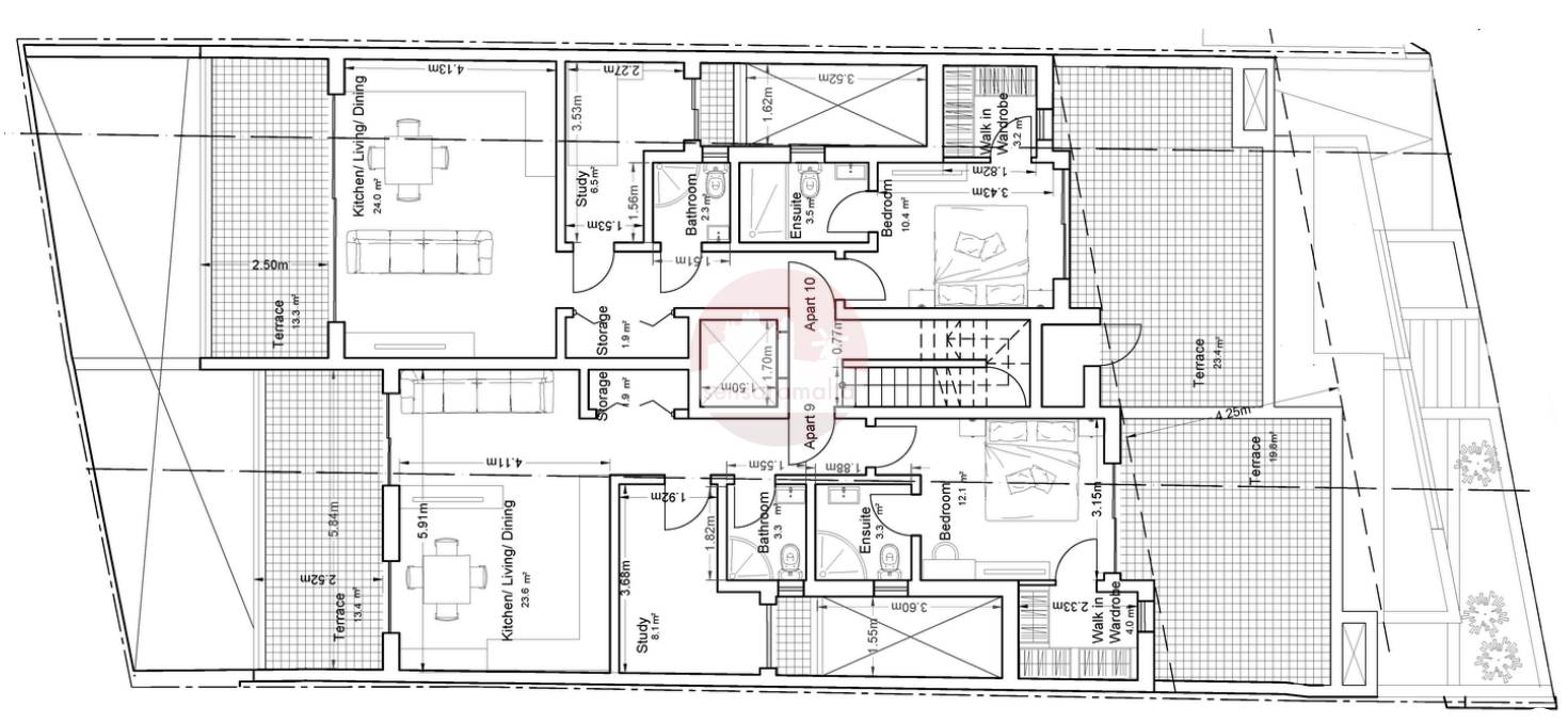 Paola - 3 Bedroom Penthouse with Roof + Airspace - Ready Built Shell Form