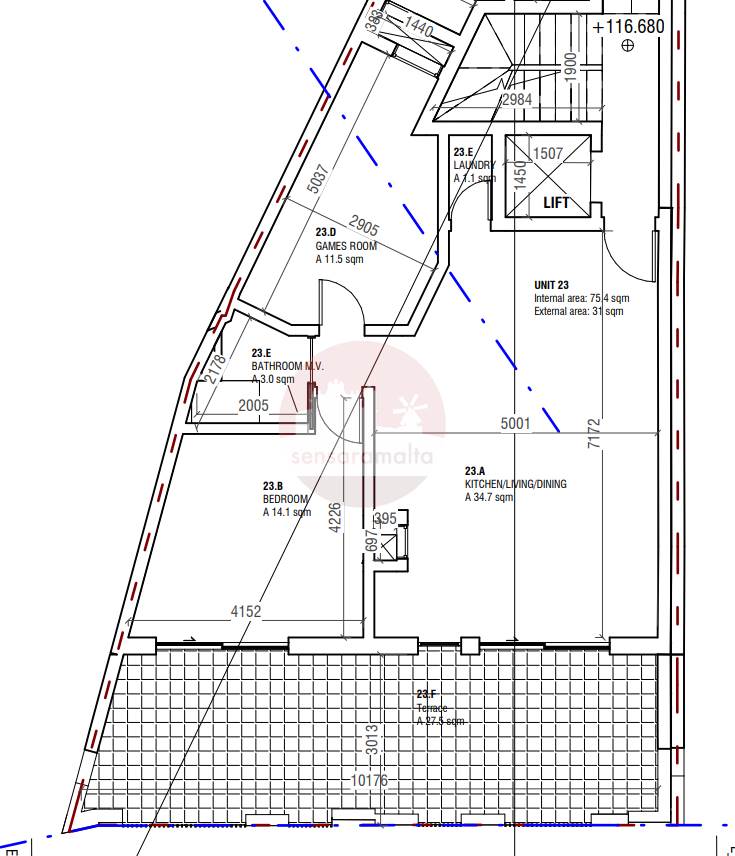 Msida - 6th Floor 2 Bedroom Finished Penthouse On Plan