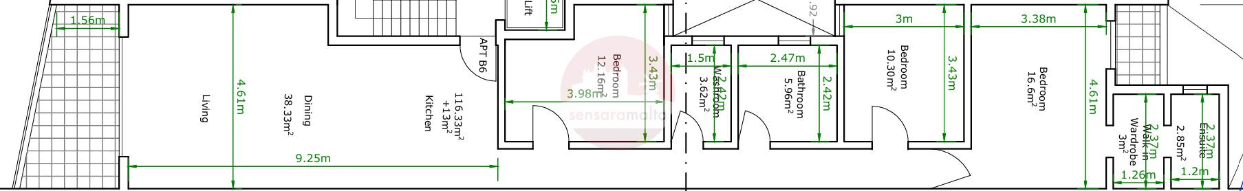 Consists of an open plan kitchen/dining/living with a front terrace, a wash room, and three double bedrooms. The master bedroom also includes a walk-in-wardrobe, an ensuite bathroom and a private balcony.