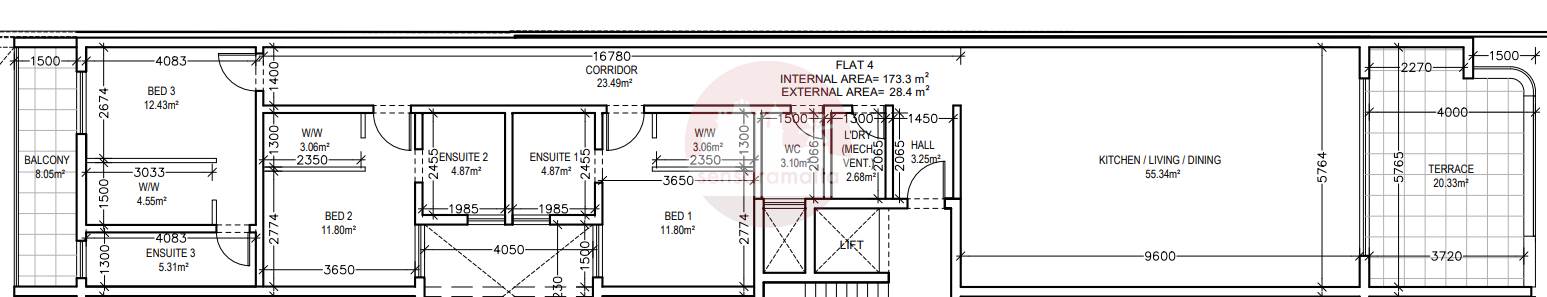 Mosta - 2nd Floor 3 Bedroom XXL Finished Apartment On Plan